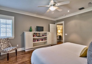 Captain's Cottage is a stunning two-story cottage in WaterSound West. Designed by the renowned Dungan and Nequette Architects, this beauty is a special treat. This 3 bedroom, 3.5 bath home boasts 2,115 s.f. of living space with white oak floors, extensive millwork, and incredible baths. This home was designed for your comfort and enjoyment with a large kitchen, covered and screened balcony, 2 living areas, open style floor plan, granite countertops, stainless Viking kitchen appliances, flat screen TVs, and spacious bedrooms! With a king bed in the master, king bed in the 2nd bedroom and twin bunks in the 3rd bedroom, this home can sleep 6 guests comfortably. You will love riding one of the four bikes to all the amenities of Watersound, varying from winding trails and boardwalks, to the zero entry pool with cabanas, grill area and fireplace. Make lasting vacation memories at Captains Cottage!