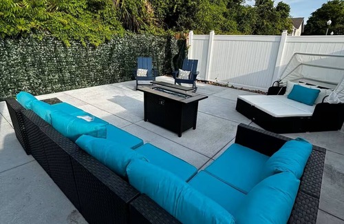 Enjoy easy access to everything from this perfectly located home base. Whirlpool tub and and a relaxing outdoor space with a fountain and fireplace Less than a mile from downtown Palafox street, 15 minutes to the beach, and close to hospitals for traveling nurses!