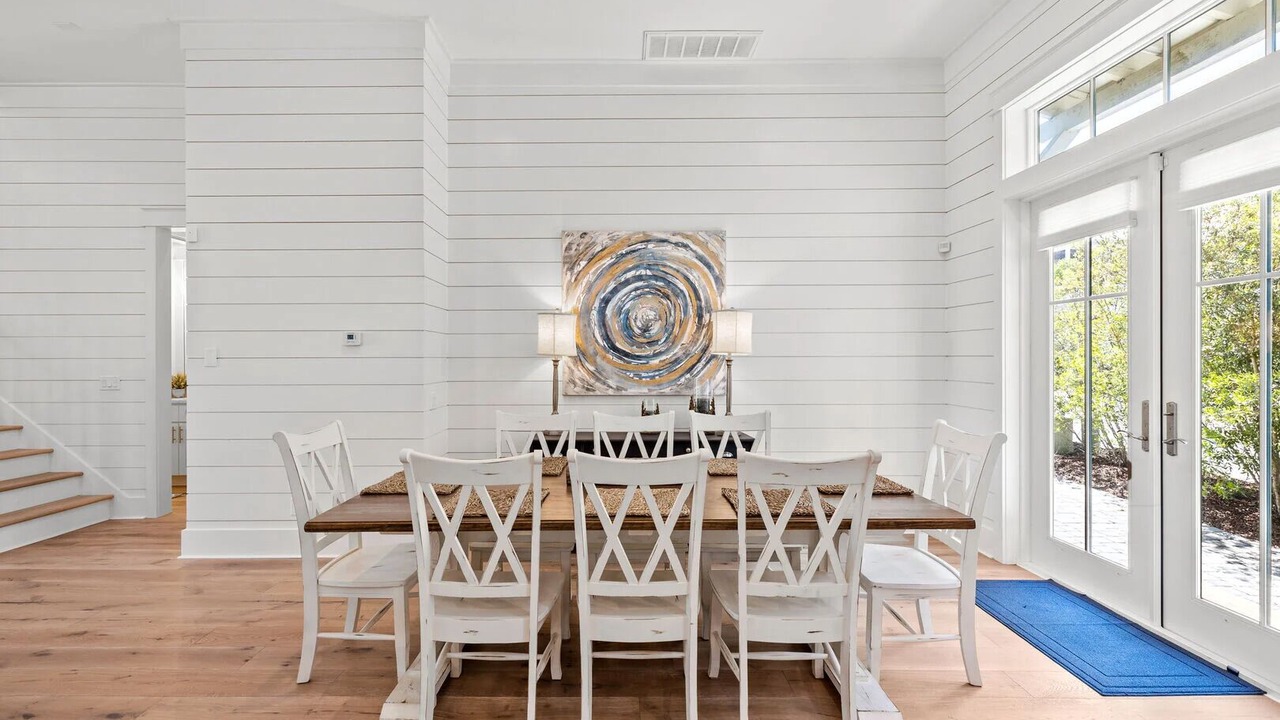 ABOUT THE HOME: Location, Location, Location … Aqua Vista is perfectly located in the Lakeside neighborhood of Blue Mountain Beach on 30A. This lovely coastal home can comfortably sleep twelve (12) with a master bedroom on the main floor, four more rooms upstairs, including a bunk room and an entertainment space for kids to hang out. The large open living area and kitchen is where everyone can hang out without feeling crowded. Aqua Vista is next door to the community pool which makes it convenient for everyone to go back and forth. And, the walk path to the beach is across the street.