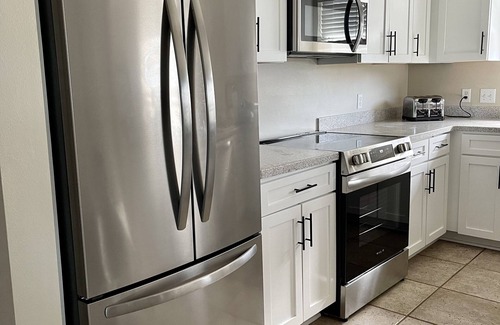 Set on a corner lot that spans a generous 1/3 acre, our property features tropical landscaping, an irrigation system, and your very own sparkling 13' by 26' heated pool! We’ve got comfy outdoor furniture, along with pool floats and toys, to make your stay more enjoyable. The pool is exclusively yours—a refreshing oasis just steps from your front door. Need a little extra warmth? Pool heating is available for an additional $50 per day between March and October upon request.