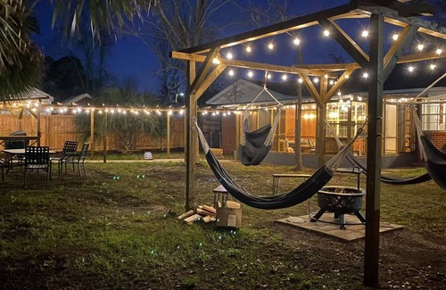 Fire pit with hammocks for ultimate relaxation