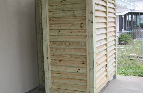 There are two decks facing the Gulf of Mexico. The first floor deck is screened and can easily seat 12 people and offer a panoramic view of the coast. This screened in porch is just yards from the water allowing anyone on the porch eye contact with family members on the beach. The second floor balcony is open air with a railing and is situated directly off both master bedrooms.