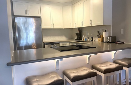 It is sleek, and modern, and very cool. You will feel right at home as soon as you walk in the door. We have stocked the unit with everything you could need. From the blender to make a frozen cocktail to the beach chairs and cooler you don't need to pack in your mini van.