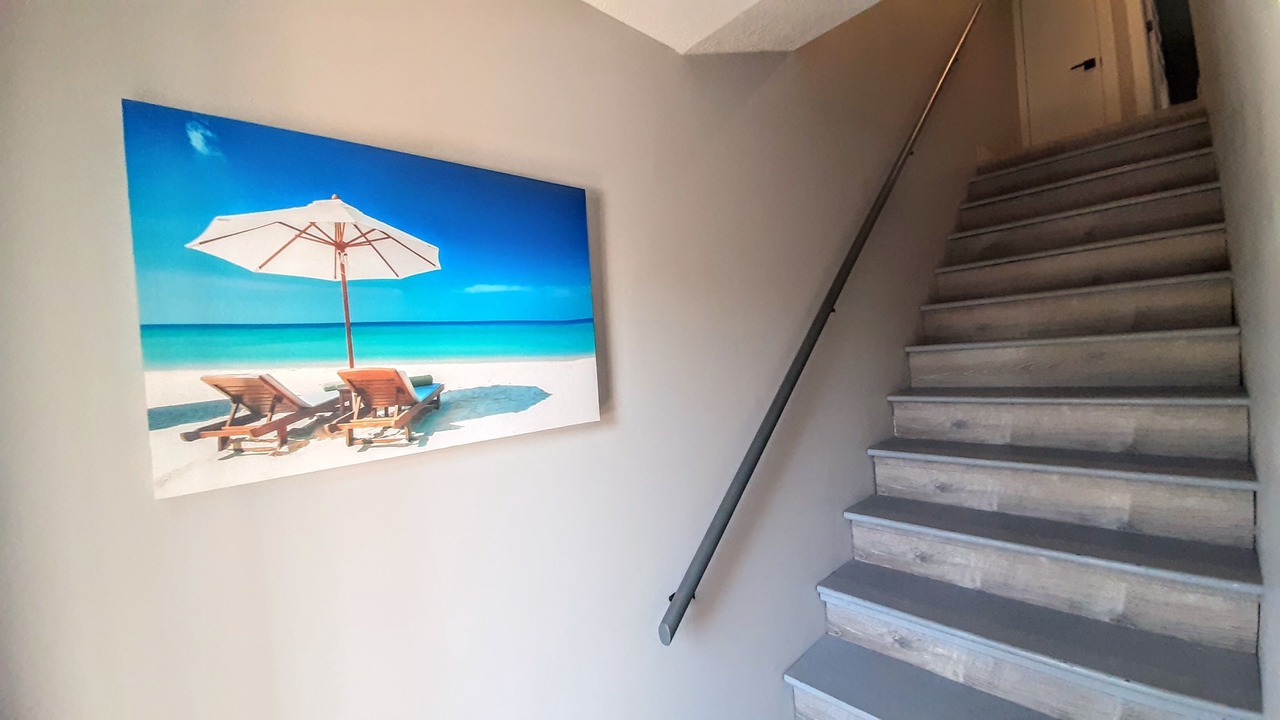 At the back, the house has a storage room with beach chairs, beach cart, cooler and some kids-beach-toys. There is also a grill perfect for your bbq's after the perfect beach day.