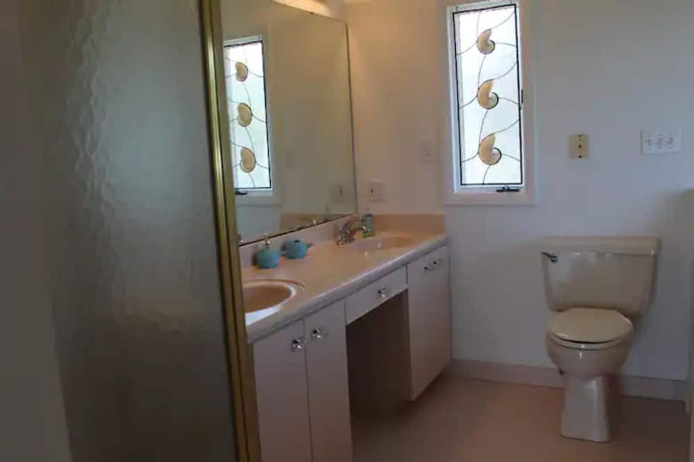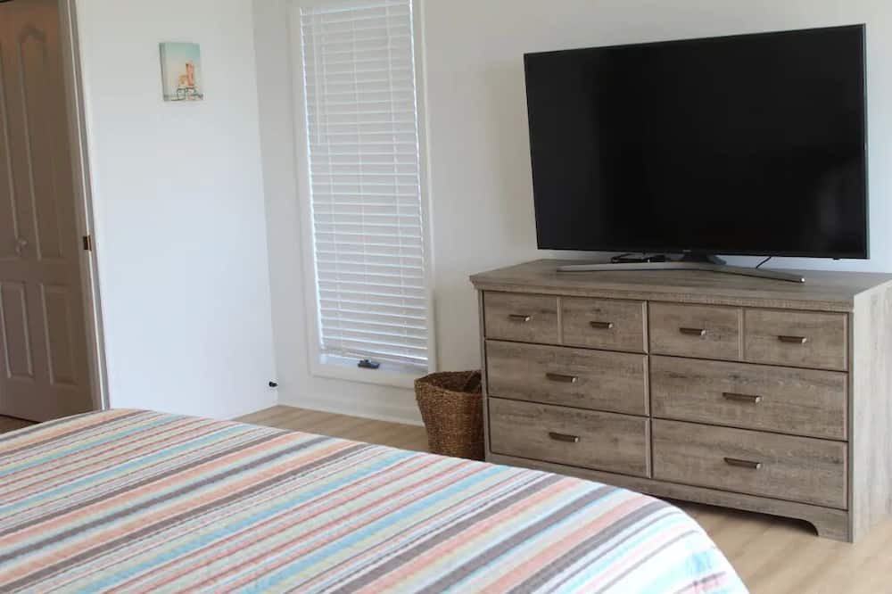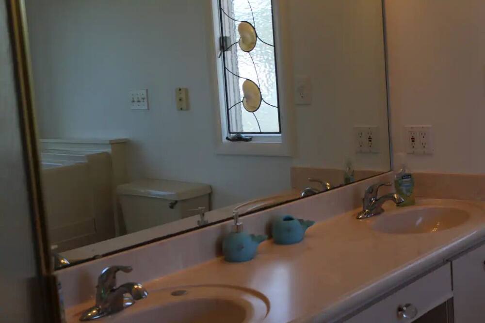 On the third floor you will find the master bedroom with ensuite bathroom which has double sinks, a walk-in tub and corner shower. The master has a queen adjustable bed with memory foam mattress, ceiling fan, smart tv with dish network and a private balcony over looking the bay. There is a 2nd master bedroom also on the 3rd floor which also has an ensuite bathroom, it has a shower, toilet and single sink. The 2nd master bedroom has a queen adjustable bed with memory foam mattress, ceiling fan, tv with dish network, generous closets and a private balcony overlooking the bay. Also on the third floor is a large laundry room with washer, dryer and utility sink. The elevator goes to the 3rd floor, so no need to carry your suitcases upstairs.