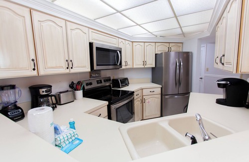 A MUST STAY! This beautiful 2 bedroom, 2 bath condo at the peaceful and quaint Summerhouse Condominiums in Panama City Beach is perfect for your family vacation! Wake up staring at the waves rolling in from your patio doors. The condo overlooks Summerhouse's beautiful pool and of course the emerald blue waters of the Gulf of Mexico. Condo accommodates your family of 7 and has everything you’ll need to enjoy your beach vacation! The master has a king size bed and own private bathroom. The guest bedroom also offers access to the guest bathroom from the room and 2 double beds. One or two small kids can sleep on the couch.