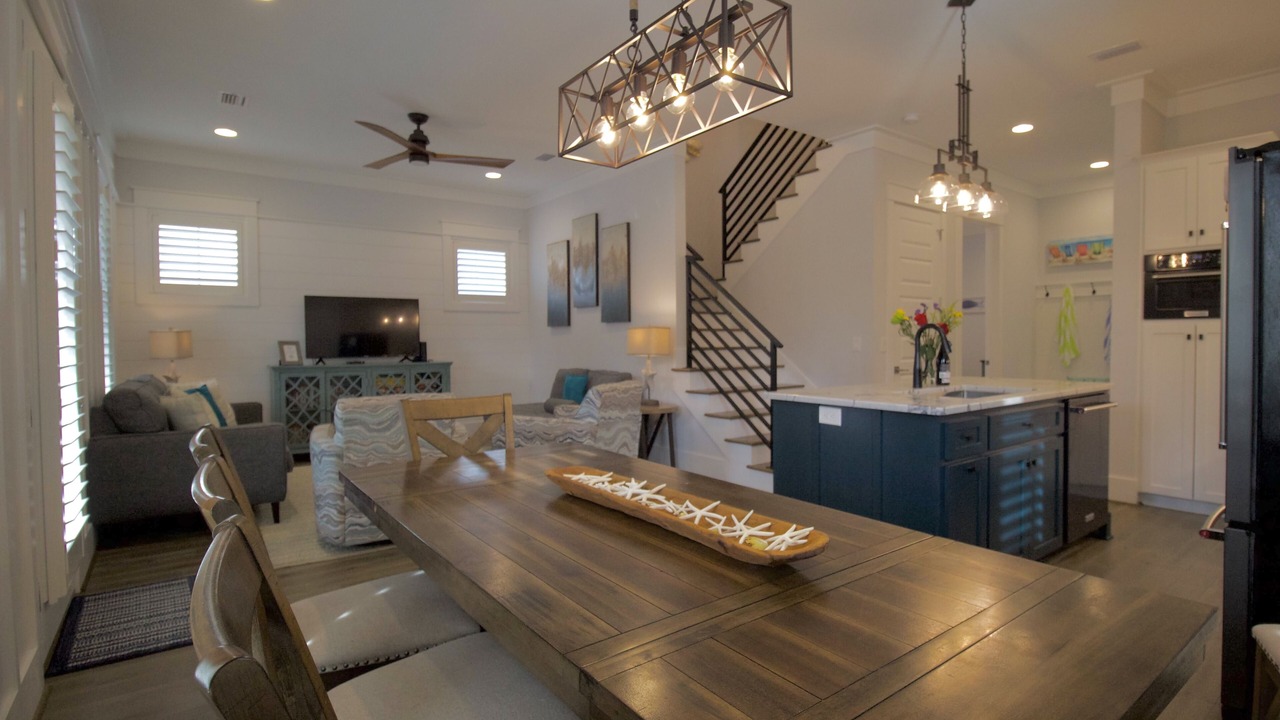 ABOUT THE HOME: This charming coastal home located in the Lakeside neighborhood of Blue Mountain, has everything you could want in your home away from home. Step inside Beach Still My Heart and be met with coastal decor, open living space, large screened in porch with a table and chairs, and beautiful artwork. Thoughtfully designed with two master suites, two additional guest bedrooms, and outdoor living on both levels this home provides plenty of room to relax, rejuvenate and enjoy your 30A getaway. The open concept kitchen and living room will be the perfect spot to enjoy family meals and watching the game together.
