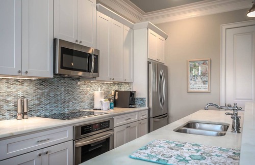 - Modern and furnished kitchen with oven, electric cooktop, fridge/freezer, wine fridge, dishwasher and plenty of cooking tools. You'll have everything needed for making sandwiches for the beach, or a night at home cooking dinner(including crockpot)We have a brew coffee pot and a Keurig for making the perfect cup of Joe to start your day!