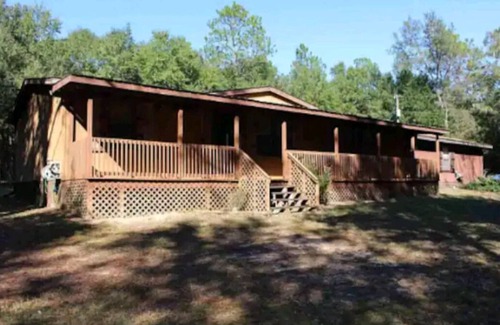 3 bedroom 2 bath farmhouse cottage located on 6 mostly wooded acres, with a large fenced in yard for your pets. Here you get the privacy you crave all while only 30-45 minutes drive time to several gorgeous beaches. This place is perfect for those that don't want to just visit 1 beach but prefer to beach hop between the different local beaches. Or if you are tired of the hustle and bustle and just want to enjoy the nice quiet privacy of this serene location. The home will easily sleep 8 people. It also has a guesthouse on the property which is available for rent as well. Perfect for those with large parties. The guesthouse has it's own fenced yard as well and the fences aren't joined so if you have dogs that tend to fight at other dogs they should be fine here because the fences are completely separate. The main house has a large porch with rocking chairs where you can enjoy your morning coffee and it faces the very private fenced front yard.