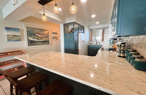 You'll love the recently remodeled kitchen, which is fully appointed and stocked with all major and minor appliances as well as a complete set of cookware, utensils, and dishes. Whether you're planning to prepare multi-course home cooked meals during your vacation or looking to grab takeout from your favorite restaurant, you'll appreciate the conveniences of this spacious kitchen.