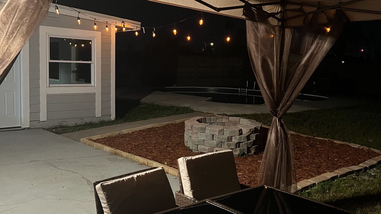 The patio has a beautiful terrace, pool, area for barbecue and fire pit where you can wind down and enjoy some quality family time.