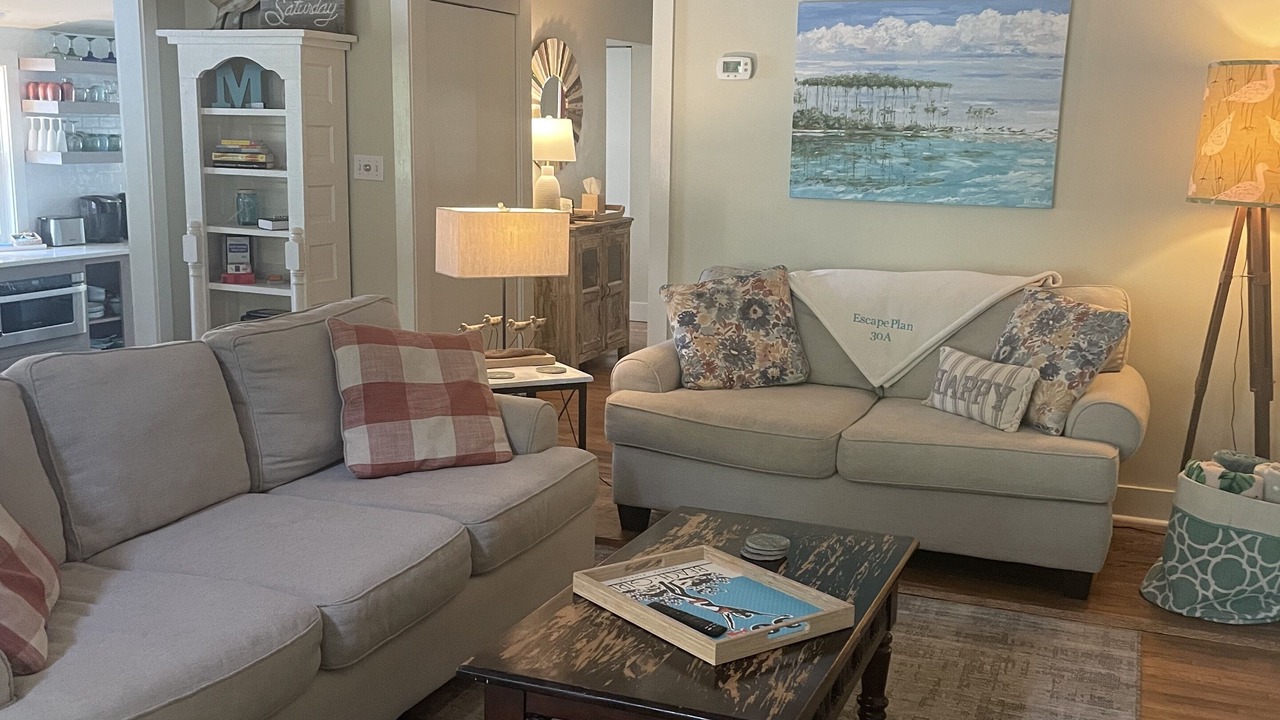 Escape to Escape Plan 30A! Be a part of the Seaside fun, then escape at night to this quite, quaint cottage in the trees overlooking the canal. Night swim to sounds of nature.