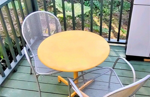 Please note that while the property can sleep 4, the dining table only seats 2. However, there are TV trays and a table with 4 chairs on the outside deck available as well