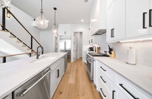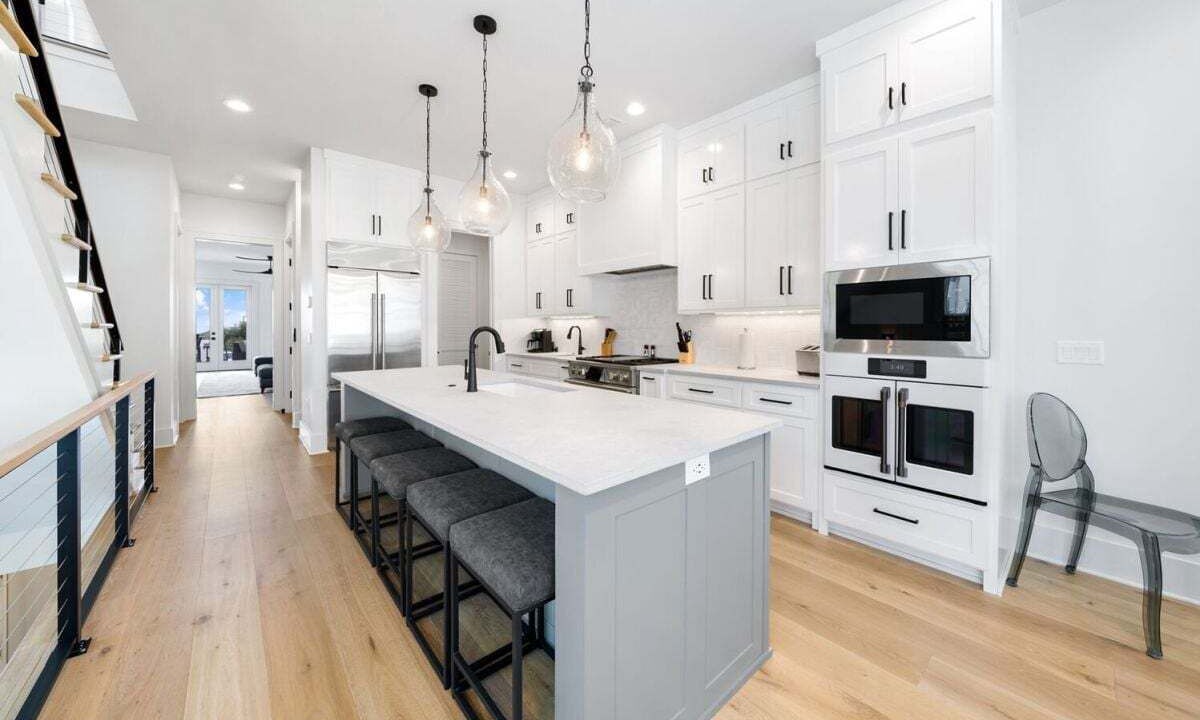 * State-of-the-art appliances in a fully equipped indoor kitchen.
