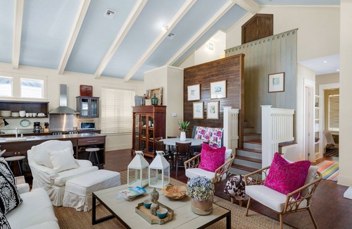 You might just forget you're so close to the water when you relax in this amazing Parkshore Drive home featuring stately pillars girding a wide and cheerful wraparound front porch. Plan your next Panama City adventure with the free WiFi while you kick back in the open-concept living area under cathedral ceilings. Share a plate of breakfast tacos at the breakfast bar before heading down to the beach or use the fully equipped full kitchen to create something magnificent for your next dinner party - you've got all the stainless steel appliances you need to make some magic.