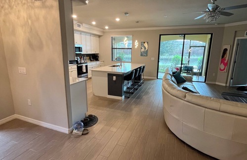 Make yourself at home in this delightful 3 bedroom /2 bath coach home ! Featuring 2 king beds and a queen bed, this condo is perfect for a family or couples looking to enjoya resort style vacation. Huge resort pool with tiki bar style restaurant, spa , fitness classes, tennis andso much more. Enjoy the convenience of WiFi, AC, a hair dryer, and a washing machine during your stay. Relax in the comfortable living space and take advantage of the heating for those cooler evenings. Enjoy all that Bonita Springs has to offer when you stay at our place. Bonita national has 3 smalls community pools and one resort pool with restaurant & bar. You can transfer the social membership for a fee or just enjoy the other pools if you don’t need the membership!