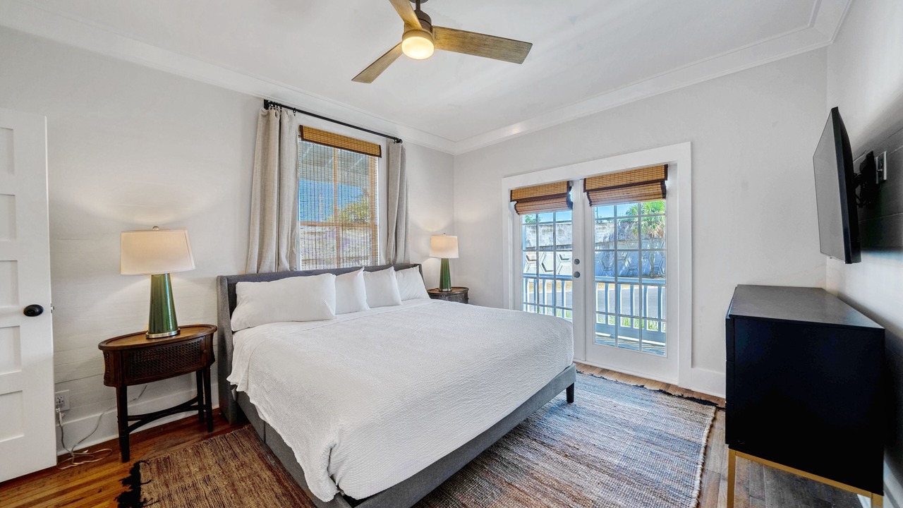 Discover the Taranto House, where history blends with contemporary amenities in downtown Apalachicola. View the serene Apalachicola Bay and its bridge from your deck with French door access, relax in a comfortable king-sized bed, and enjoy the refined beauty of a marble bathroom with a walk-in shower. This treasure offers the seclusion and appeal of five distinctive rooms, combined with the convenience of a location ideal for discovering the town.