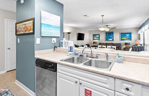 Just steps away from the shared pool (that guests can enjoy!), this ground floor condo provides a calm, stylish hub for your beach vacation. Step inside to cool off in the central air conditioning, then enjoy some of the living's room's seating. Cook up something tasty in the full kitchen, which features full-size appliances and a dishwasher to suit your cooking needs. When you're ready to head to bed, each bedroom features a ceiling fan for custom comfort. Walk to the beach, enjoy the shared pool, or enjoy a match at the shared tennis court.