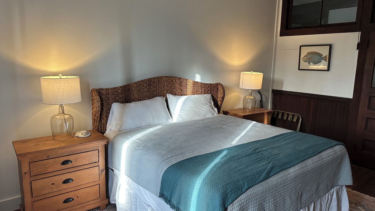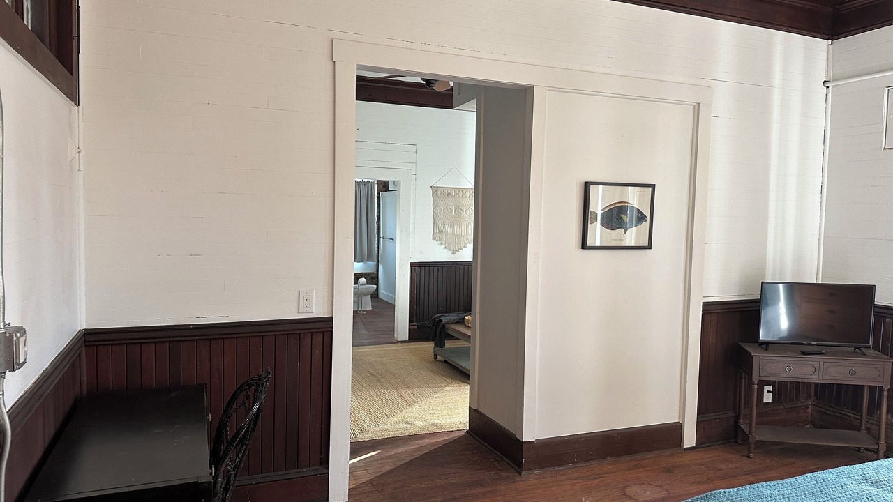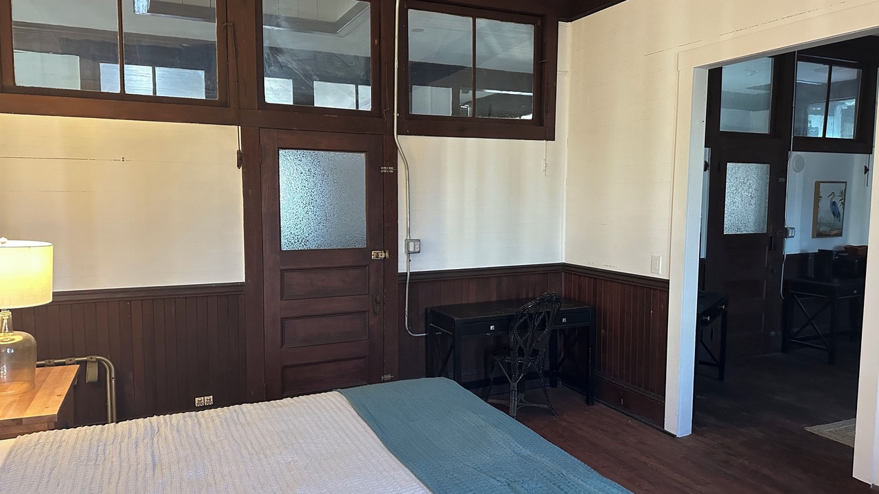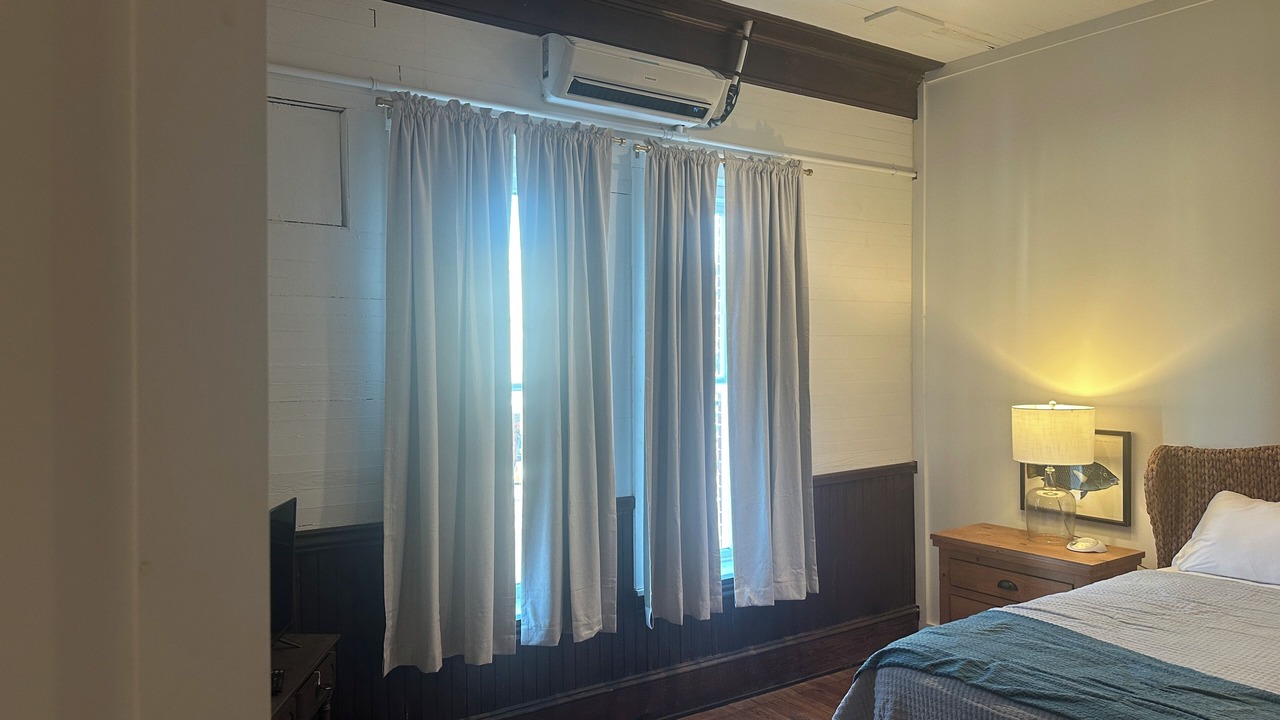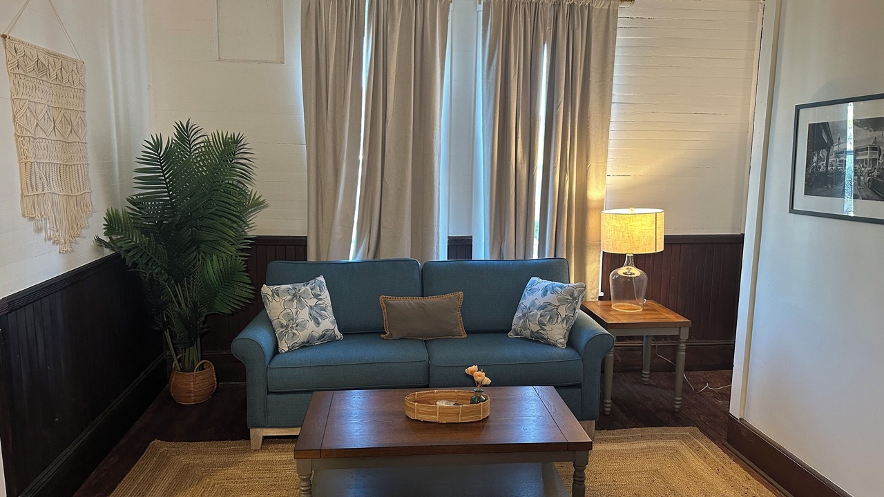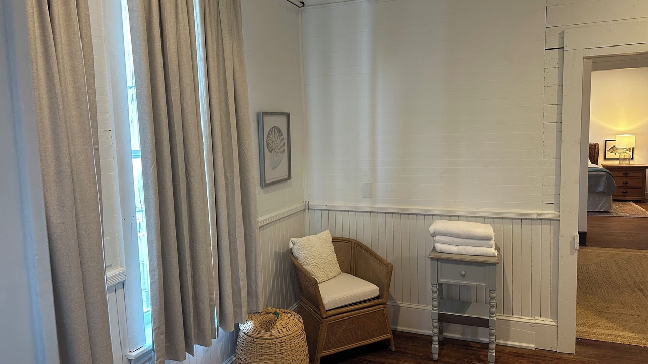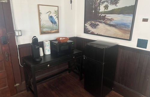 Nestled in the heart of historic Apalachicola, Florida, this charming suite offers a delightful escape with ample space to stretch out and relax. Housed in an historic building, it boasts period-correct wood floors and high ceilings, adding to its timeless charm. The suite features a luxurious king-size bed and a convenient pull-out queen sofa, comfortably accommodating up to four guests. Enjoy modern amenities including a coffee maker, microwave, and mini fridge to make your stay even more comfortable.