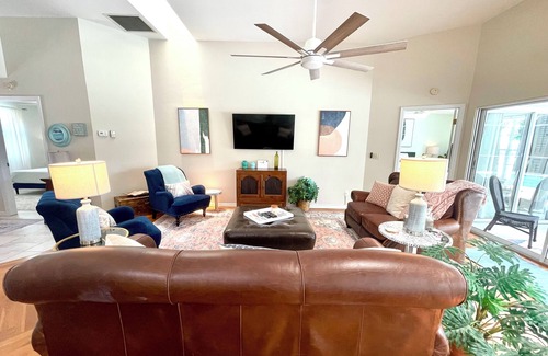 There is a public park a little over half a mile away which offers lighted Tennis Courts, Basketball courts, and Raquetball courts. There is an L.A. Fitness, and public library just about 0.8 miles away as well. This home is perfectly situated so that you are close to more than enough to keep you busy while enjoying your vacation.