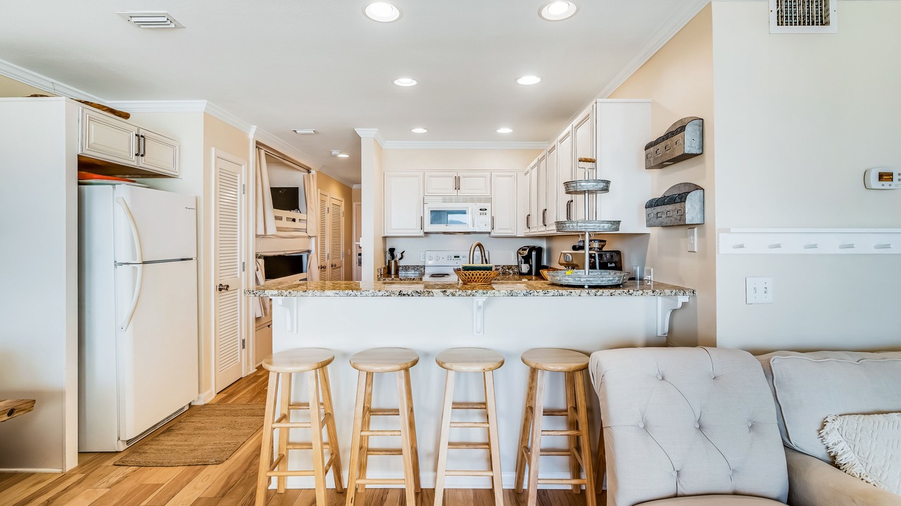 This home has everything guests will need to make the best beach memories. The fully equipped kitchen will make preparing delicious meals and beach snacks easy. Brew a cup of coffee and sit on the private balcony and enjoy the beach breezes. Plenty of space for friends and family to relax and unwind while spending time at the beach.