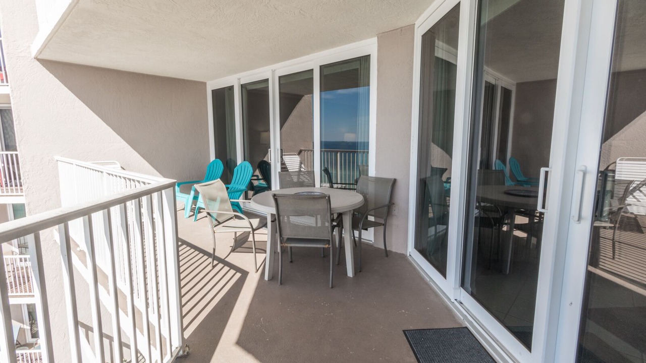 The balcony faces the Gulf, offering beautiful views that are slightly angled to the west—perfect for watching sunsets paint the sky.