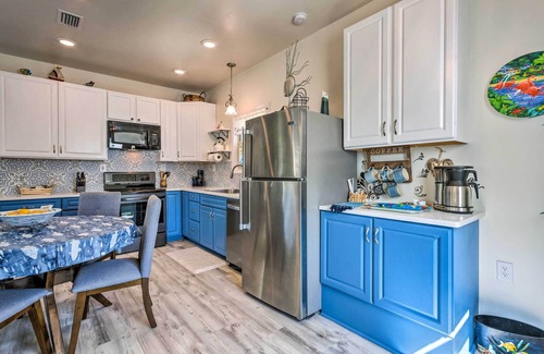Bright, updated, and filled with plenty of coastal charm, this 2-bedroom, 1-bath vacation rental is the perfect place for your family’s next trip to Gulf Breeze! Conveniently located on the East Bay, this newly built home provides easy access to endless water sport recreation. Take the provided kayaks out for a spin on the water or cast a line off the on-site dock. After a day of adventure, light up the fire pit and watch the sunset over the bay.