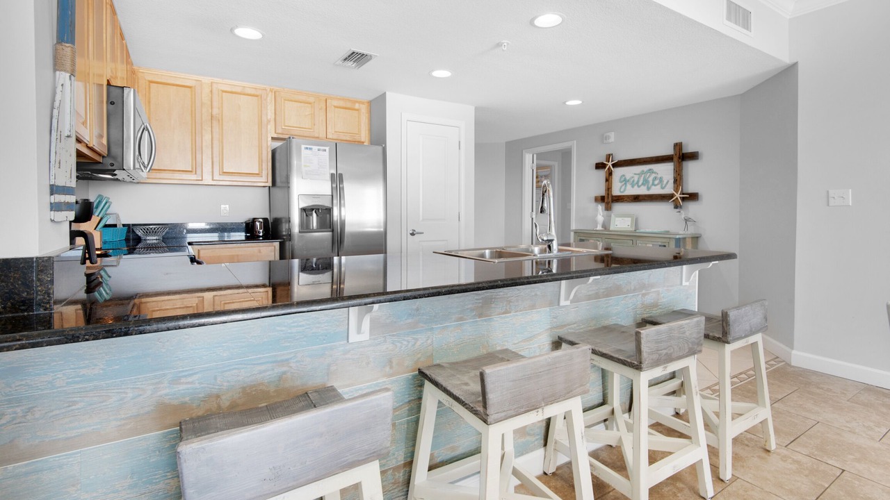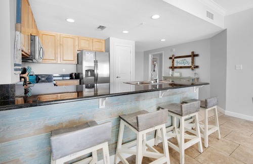 Grandview East 304 is the perfect choice for your next trip to the Emerald Coast with over 1550 square feet of Beach FRONT living space! This recently updated 3BR/2BA condo is located on the 3rd floor, boasting spectacular views from the living room, kitchen, and master bedroom! Relax and enjoy your favorite beverage on your private balcony, taking in the view of the sugar white sand beach as you watch the waves crash against the shore. Prepare a meal in the fully equipped kitchen with granite counters and stainless-steel appliances. With a king bed in the master, a queen bed in the second bedroom, a twin over full bunk bed with a twin trundle bed in the third bedroom, and a sleeper sofa in the living room, this condo accommodates up to 8 guests. Also, you will find a full-sized portable crib and mattress for your use, it will be folded in the master closet. Come see why Grandview East 304 is a family favorite in Panama City Beach!