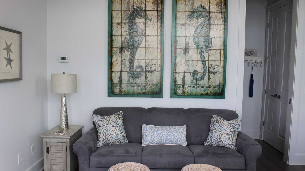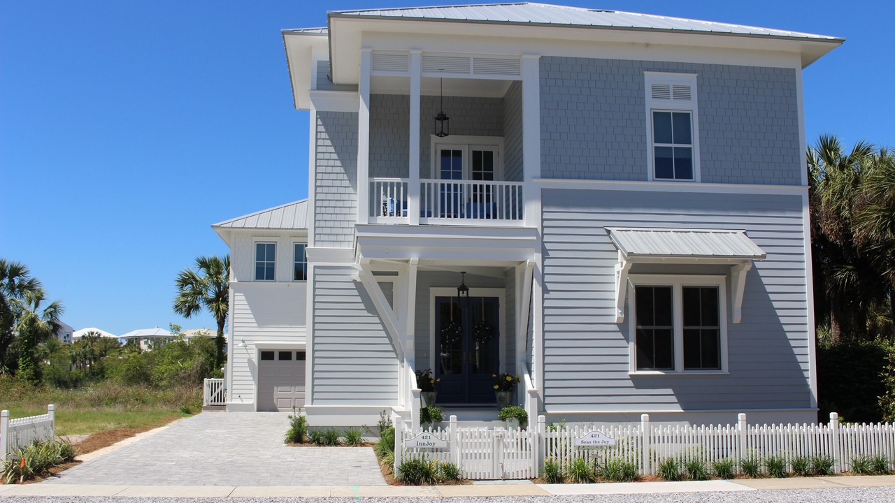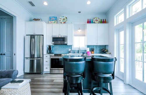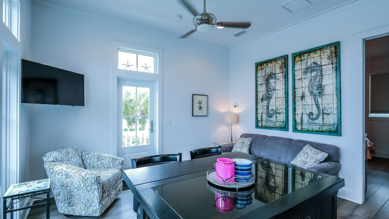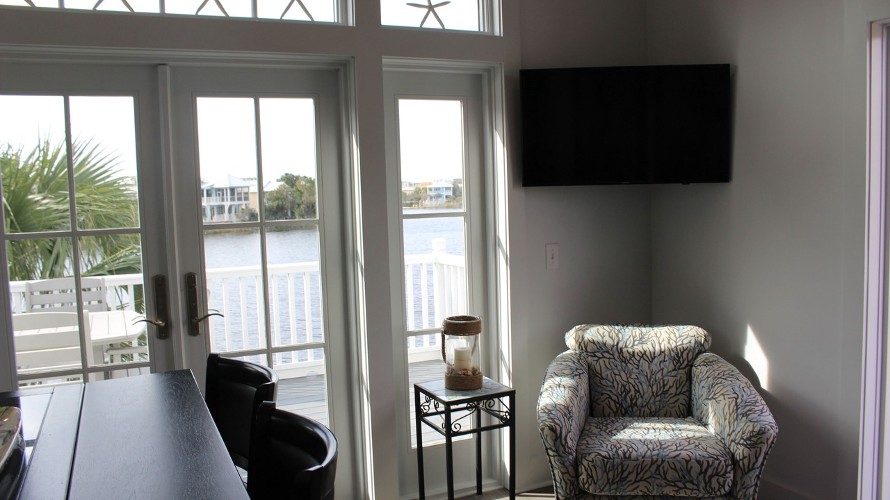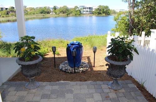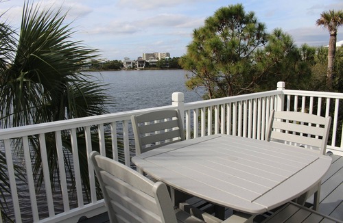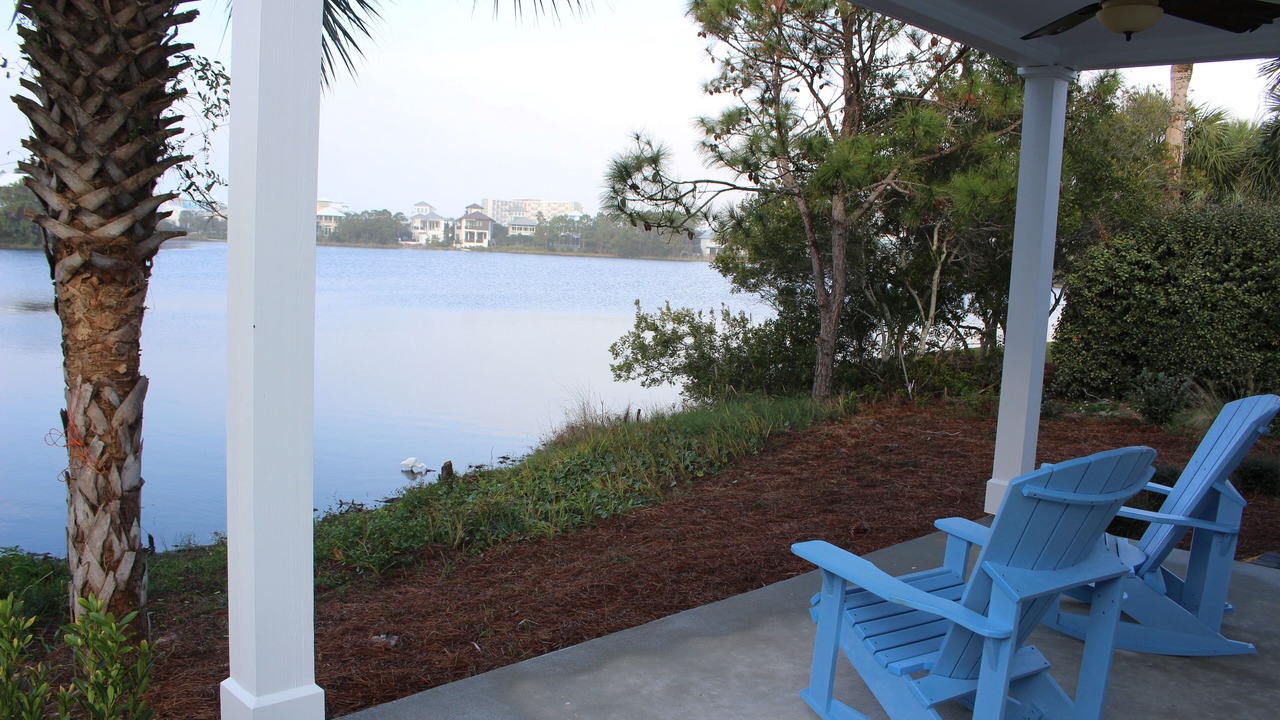 Beautiful Lakefront 1BR 1BA Guest House in Carillon Beach. It's cozy, and offers everything you need including full-size kitchen appliances and washer/dryer. For peaceful nights, there is a king size bed with memory foam mattress. The home offers a lot of space outside with a 150 square foot balcony with a dining set. There is also a beautiful patio with a grill, two Adirondack rocking chairs, and a porch swing that sit right on Lake Carillon - all perfect for Happy Hour and watching sunsets. When you're ready to go to the beach, it's a short walk down the sidewalk to Crossover #7 where you will find 3/4-mile of beautiful beach. No need to cross a busy street. There you will find two beach lounge chairs with an umbrella reserved just for you during the season (March 1 - October 30). When you've had enough sand, enjoy the three pools - one overlooking the majestic Gulf of Mexico, a heated pool, or the pool just five lots from InnJoy. When you return, enjoy the outside shower with hot water.