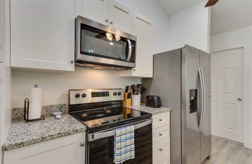 Embark on a beachy retreat at this charming 1-bedroom, 1-bathroom vacation rental in Gulf Breeze, Florida! Perfect for couples or solo travelers, this home offers a prime location near the shore and all the conveniences of home. Soak up the sun at Navarre Beach, meet furry friends at the Gulf Breeze Zoo, or visit the Pensacola Lighthouse & Maritime Museum. After fun-filled days, prepare a home-cooked meal in your fully equipped kitchen and enjoy al fresco dining on the screened porch.