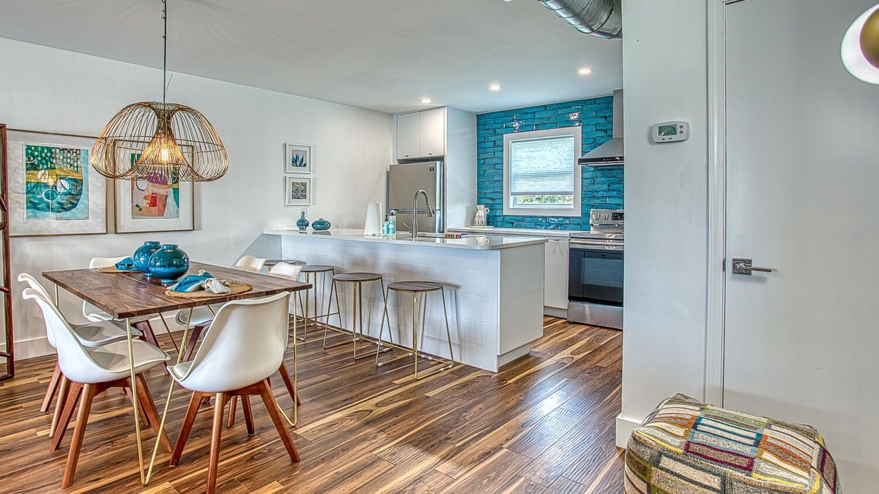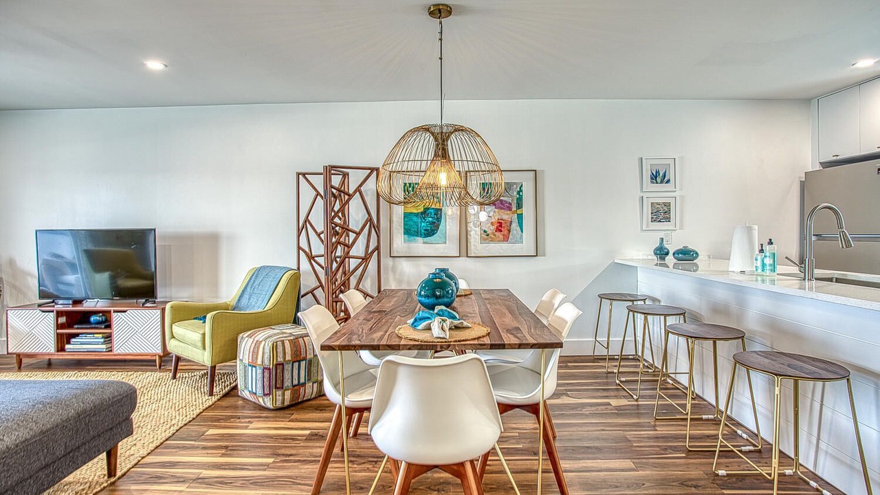 The living spaces have been freshly renovated and meticulously designed with numerous unique features and amenities - all with a mid-century modern vibe.