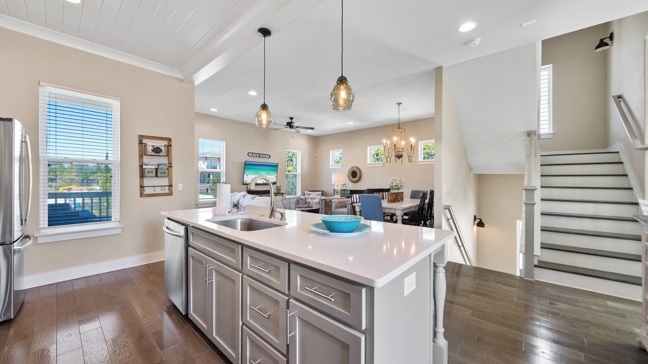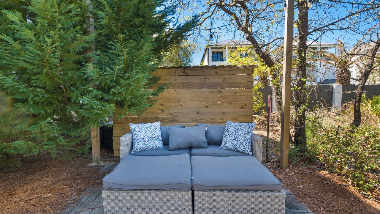 This beautifully crafted beach cottage is located in the Dune Allen Beach area. The most convenient beach access is Ed Walline. It is less than a 5 minute walk to the beach. This home offers fours bedrooms, 4.5 bathrooms, bunk bed nook, fold out couch, balconies on the front and back of the home and front patio. The backyard patio features plenty of outdoor seating. A space for grilling as well. Perfect for afternoons of relaxation. Our home is conveniently located behind Shunk Gulley’s and Gulf Place! We offer beach chairs, beach wagon, and beach towels.