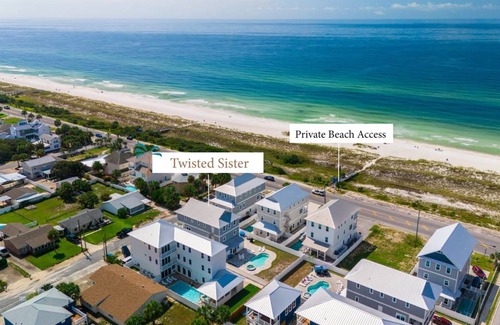 Experience Luxury and Ocean Views at Twisted Sister! Welcome to Twisted Sister in Panama City Beach, Florida, an exquisite 6-bedroom, 6.5-bath vacation home that offers breathtaking ocean views and luxurious amenities. This spectacular property spans 5,415 sq. ft. and is designed for ultimate comfort and relaxation. Located just steps away from the white sand beaches of the Gulf of Mexico, Twisted Sister provides easy access to a private, gated Bidawee beach access, perfect for enjoying stunning sunsets and crystal-clear waters.