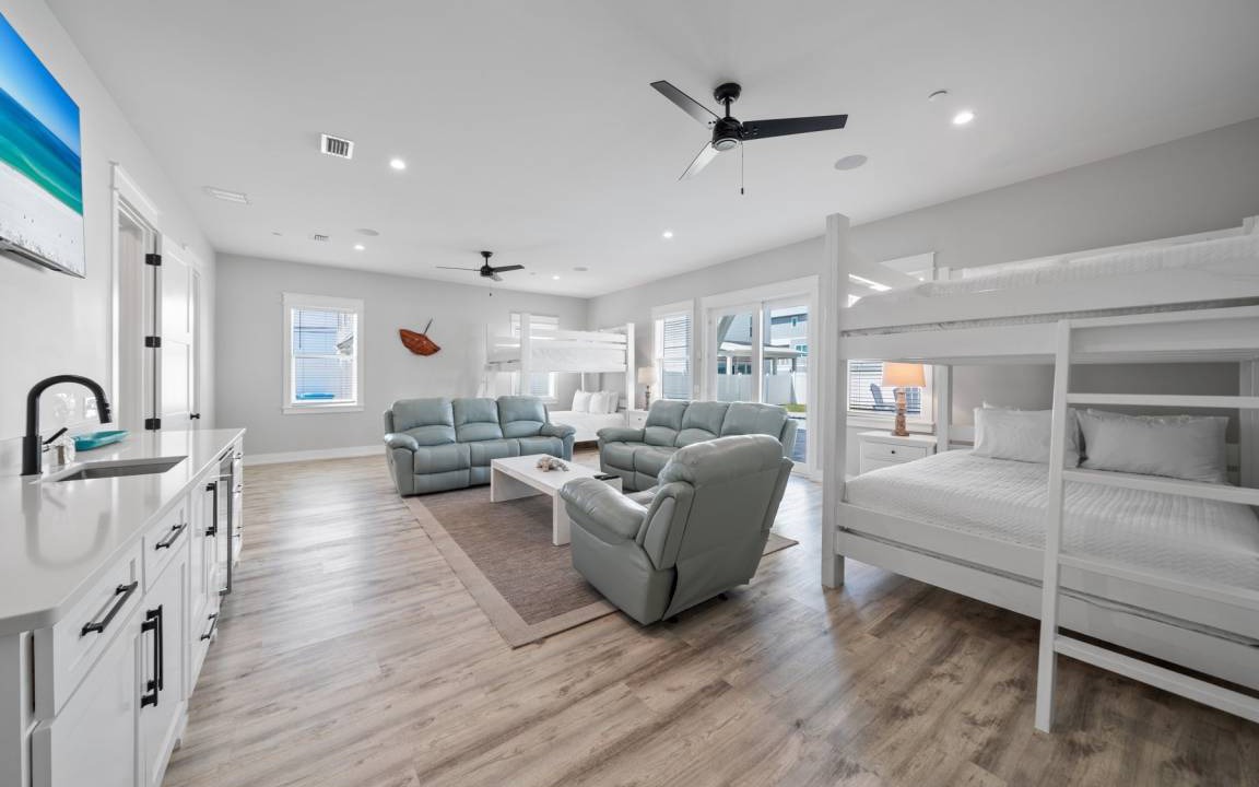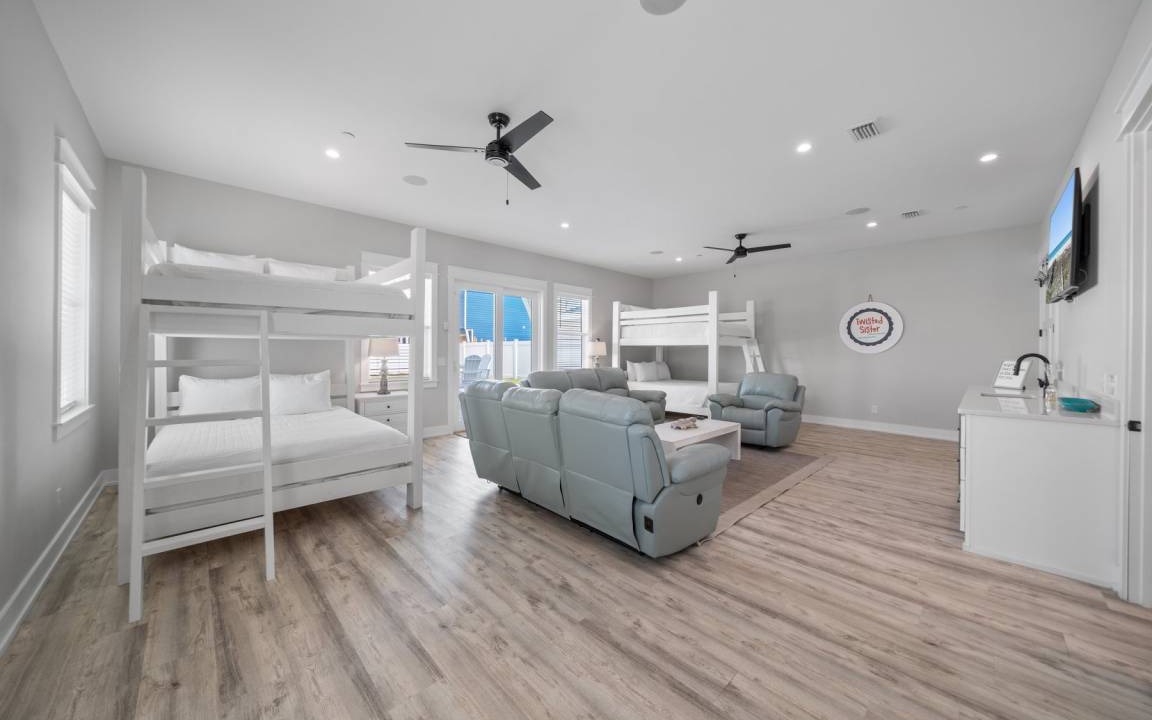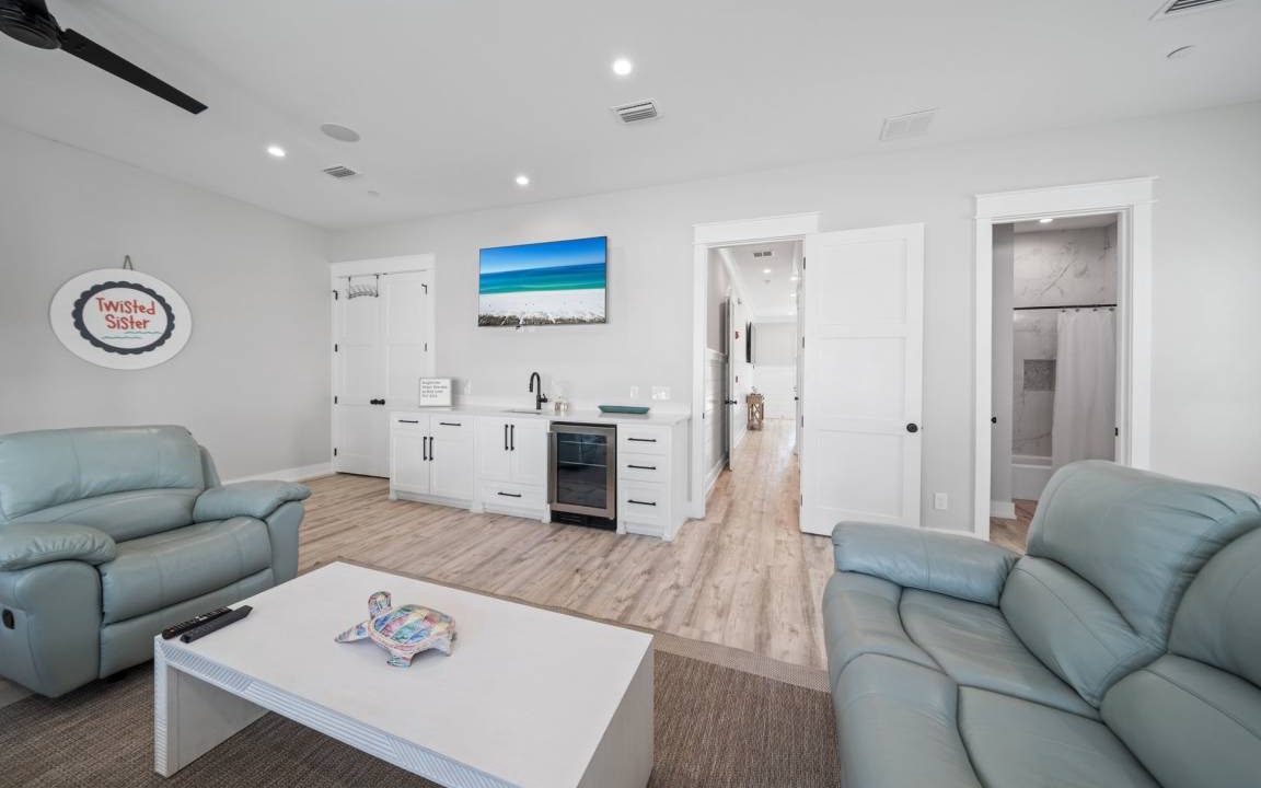 Twisted Sister is packed with modern amenities to enhance your stay, including high-speed WiFi, eight large TVs, a ping pong table, and three living room/sitting areas. An elevator is available for easy access to all levels (additional deposit required), and with two washers and dryers, handling laundry during your stay is a breeze. The home also offers spacious parking and is located less than a mile and a half from Pier Park and Shipwreck Island Water Park, with great local restaurants and shopping within walking distance.