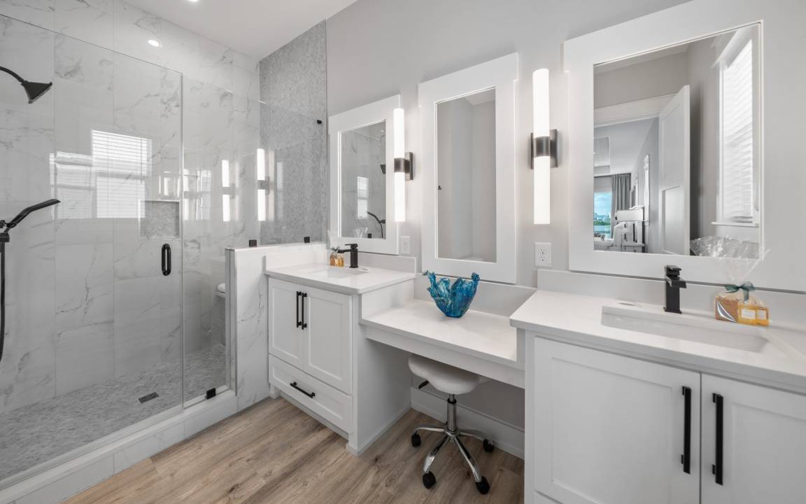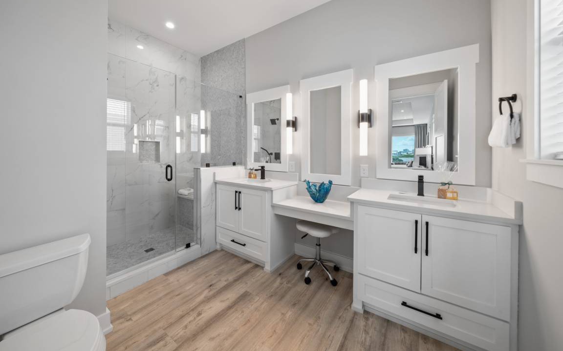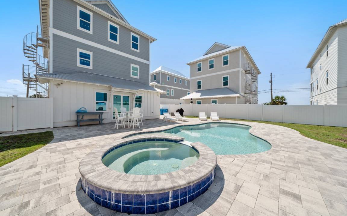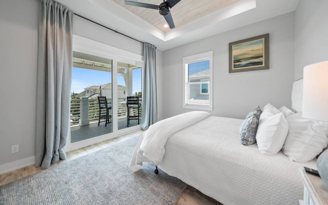 The layout of Twisted Sister ensures comfort and convenience on every level. The first floor includes a sitting room, a bedroom with a king bed and twin bunks, and an entertainment room leading to the pool area. The second floor is the main living area, featuring a large balcony with water views, a king bedroom with a private bathroom, and a fire escape. The third level hosts the owner's suite with a sitting area, balcony, and a large master bathroom, plus two additional king bedrooms, each with private bathrooms, and a laundry room for added convenience.