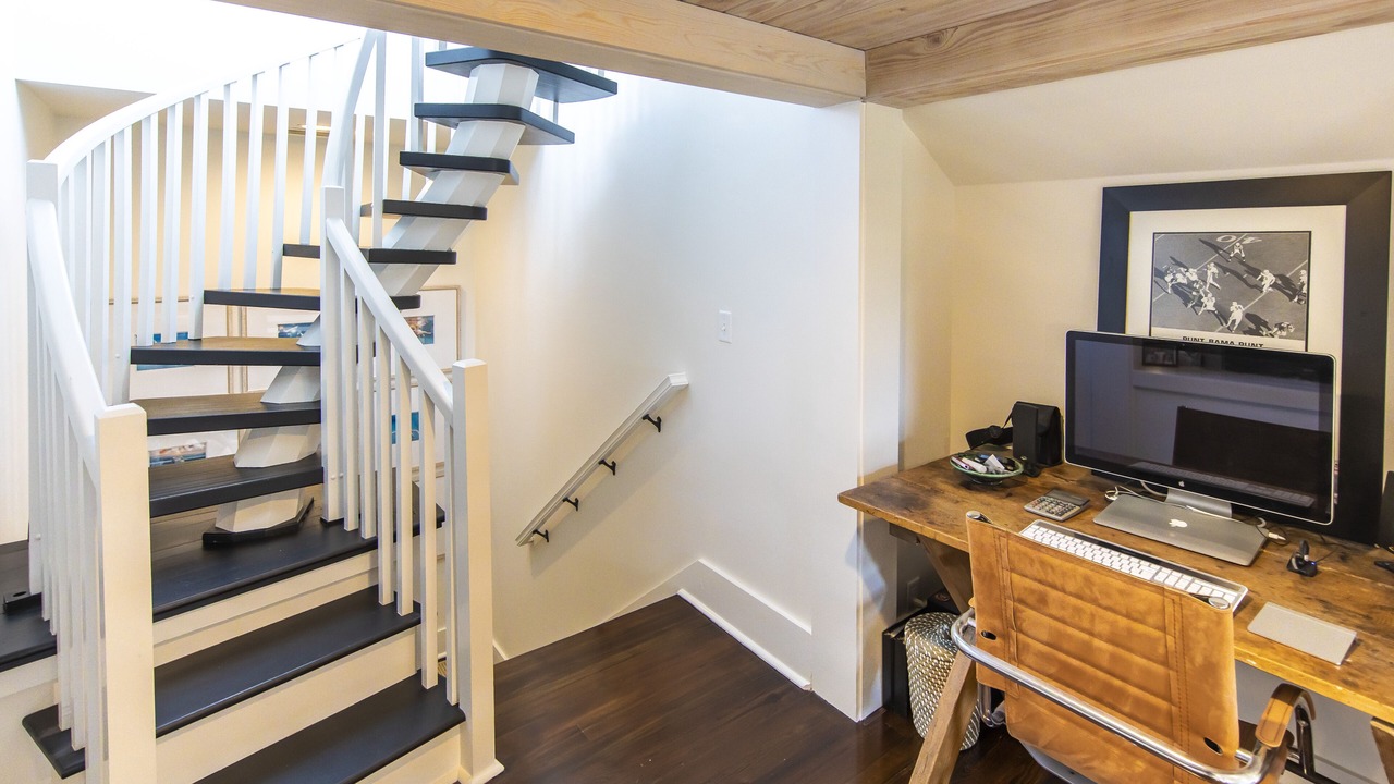 Continuing higher, a third-floor loft study overlooks the living and dining rooms below. Climbing the spiral staircase from the study, 11 South Lake Bridge is crowned by a cupola and observation deck offering lighthouse 360-degree views.