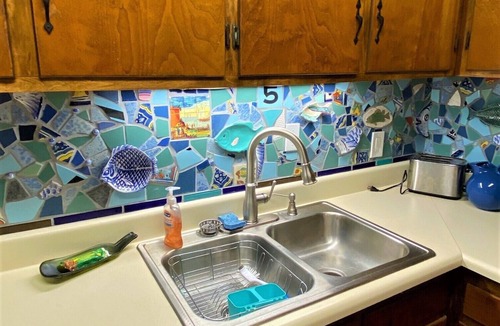 Our bathroom was completely gutted and has new everything, including a fantastic Under the Lake Mosaic with your own Mermaid...