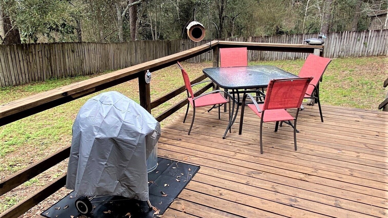 Perfect Lake getaway! Our completely furnished Cottage is near 800 acre Lake Talquin. There are 2 outdoor decks, one in front for a lake view that goes well with morning coffee, or a back yard large deck with Barbque grill and comfortable chair/table set.
