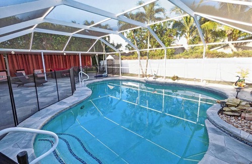 Larg heated pool, 3 bdrm, 2 bath, fast wi-fi, ps3, 4 smart TVs, large lanai with 2 covered areas is located in East Naples. Larg heated pool, 3 bdrm, 2 bath, fast wi-fi, ps3, 4 smart TVs, large lanai with 2 covered areas provides accommodation, featuring Pool, Bedding/Linens, Internet, among other amenities. This House features Pool, Bedding/Linens, Internet, to make your stay a comfortable one.