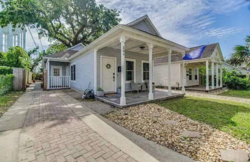 Clean, minimalist, simply designed bungalow in a quaint, downtown neighborhood. Rent bikes or walk to your destination, with a walk score of 75. Relax with the whole family at this peaceful place to stay. You can't beat this ideal location and its proximity to all events and happenings downtown and minutes to beautiful beaches. Kick back and relax in all of the delicately designed spaces or take your relaxation outside to the freshly designed patio. A perfect staycation in the ideal location.