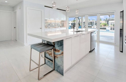 ...Are you ready for some fun in the island sun? Then look no further, than the Coastal Cabana! This waterfront home is the perfect place to escape the real world and reconnect with nature. Three bedrooms with 3 bathrooms (2 en suite) and an open floor plan provides plenty of space for your family to spread out and relax in luxury. This lovely home has been completely updated in true, Coastal Modern fashion. Inside you will find a well appointed kitchen with everything you need for your culinary creations and a big island to dine on them, along with designer leather couches and a large flat screen tv so you can watch all your favorites in complete comfort. Outside, has everything a nature lover can wish for. Take a stroll out to the brand new dock and jump in one of the kayaks or hop on the paddle board and take a cruise around Tarpon Bay and neighboring mangrove islands or bring a fishing pole and try to get that giant snook you’ve always dreamed of. If you get tired of the adventure and need a break, take a dip in the big, heated swimming pool or go for a relaxing soak in the hot spa. The large, covered lanai has lots of couches and chairs to lounge in as well as a summer kitchen to cook your catch or put some shrimp on the barbie. There is also a commercial ice machine and big dining table so you can sit by the water and watch the birds, dolphins & manatees frolic around. Welcome to paradise!