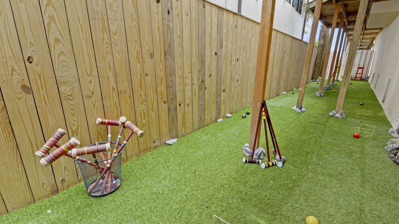 * An extra room under the deck for bocce, bags or putting green. Few homes have this! AND also, a croquet court! so, the kids are always entertained.