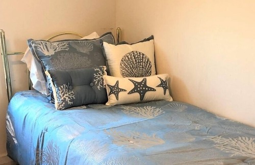 and also 2 twin beds. Sleeps 7 people. This beach home is pet friendly