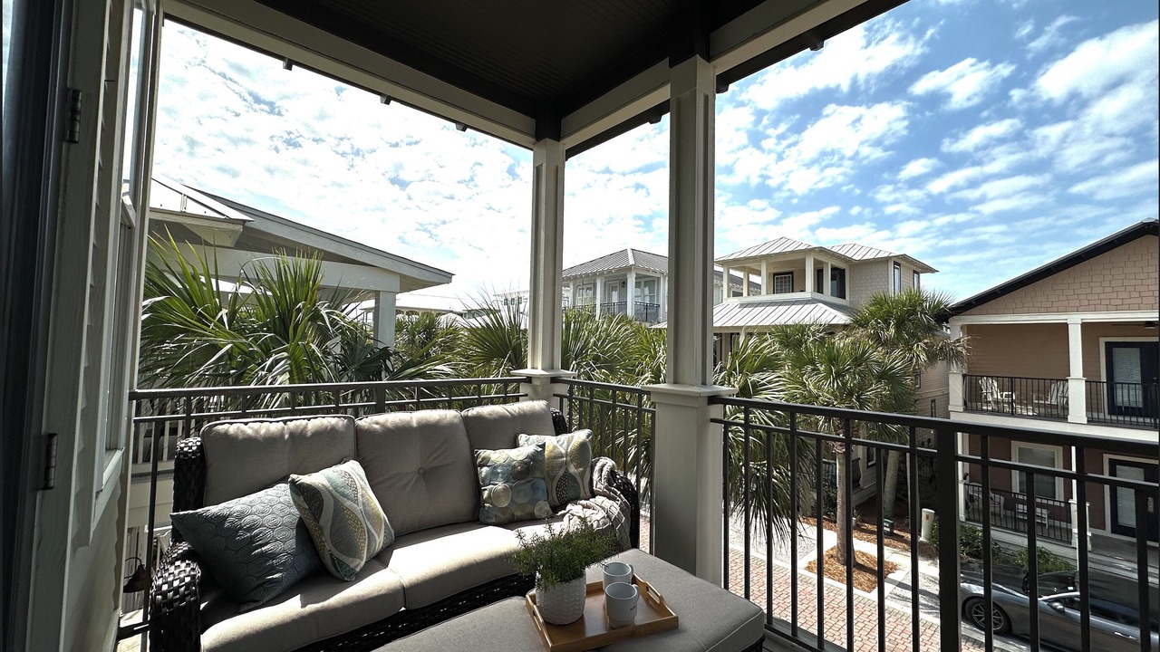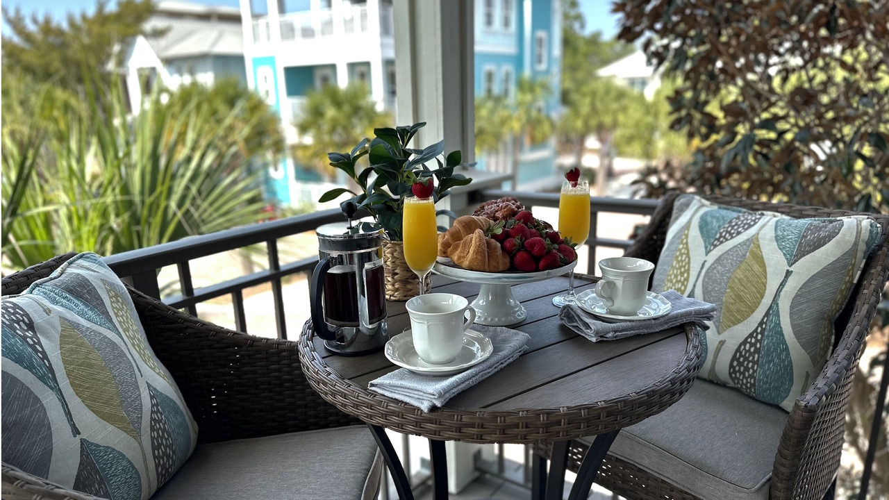 - Westward-facing Sunset Balcony overlooking Seacrest Beach rooftops, with Adirondack chairs and pub table, perfect for dining at sunset!