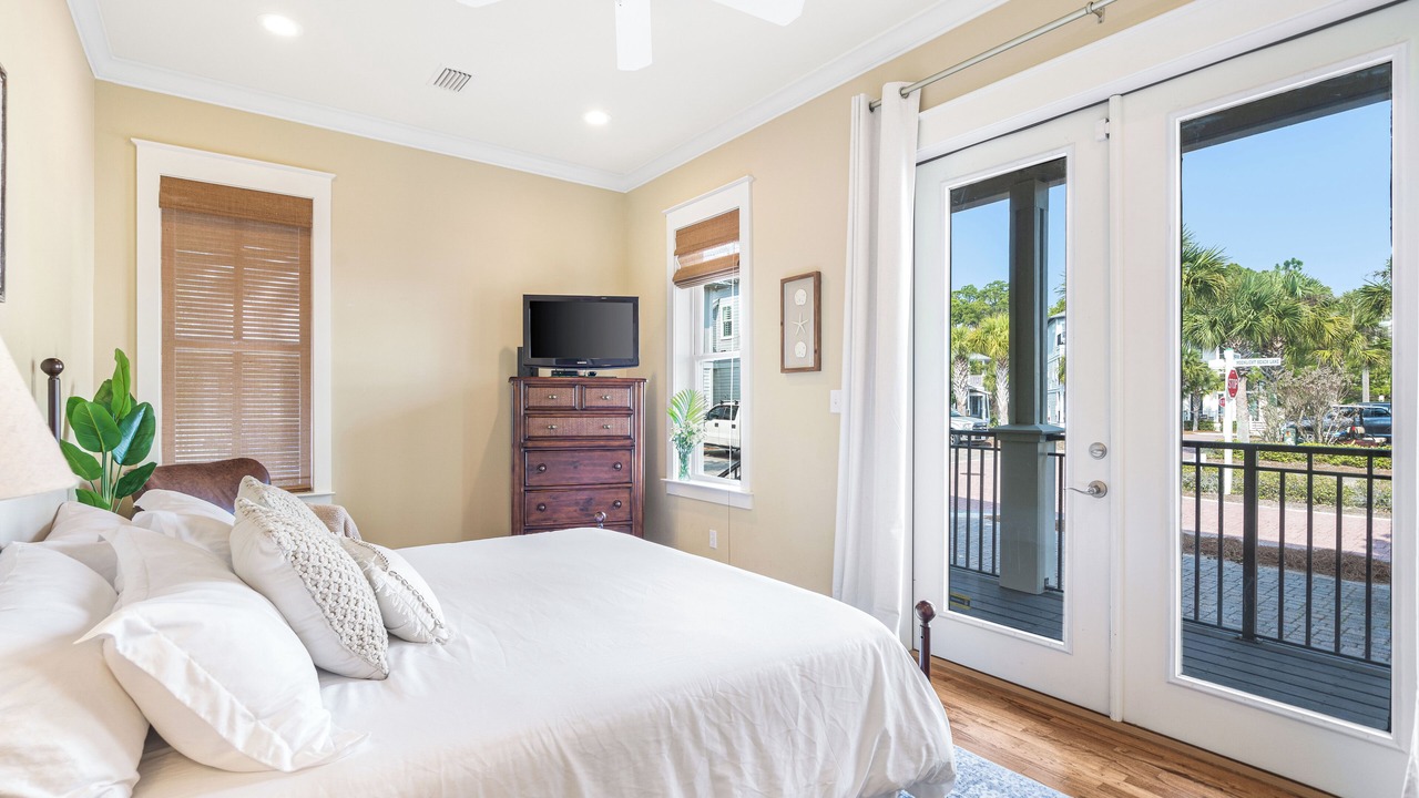 - 2nd Floor Guest Bedroom sleeps 5, with a Queen size bed and Twin over Full Bunk beds, ensuite bathroom(shower/tub combo), 32" TV, walk-in closet, and private covered balcony.