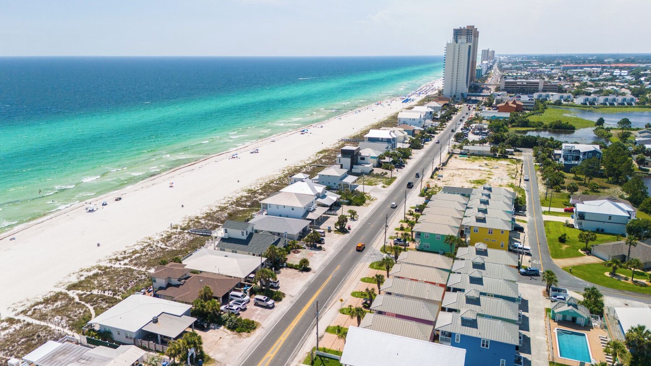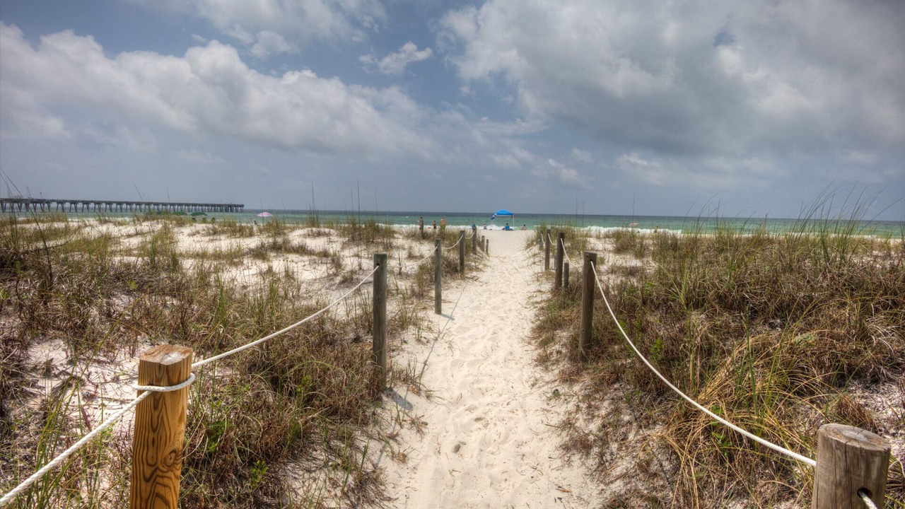 Beach is a very short walk directly across the street to Beach Access 60. Private secluded beach area near homes not high-rises.
