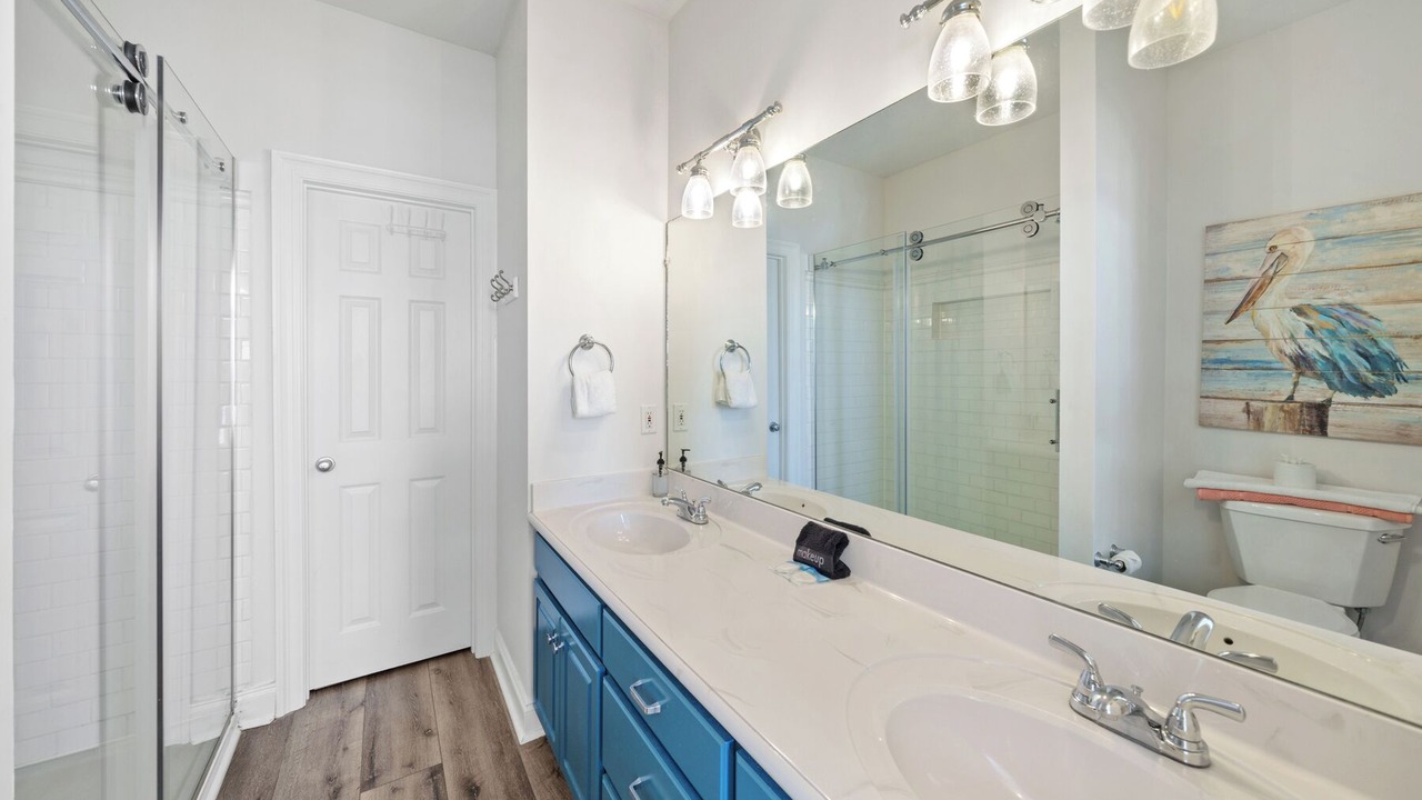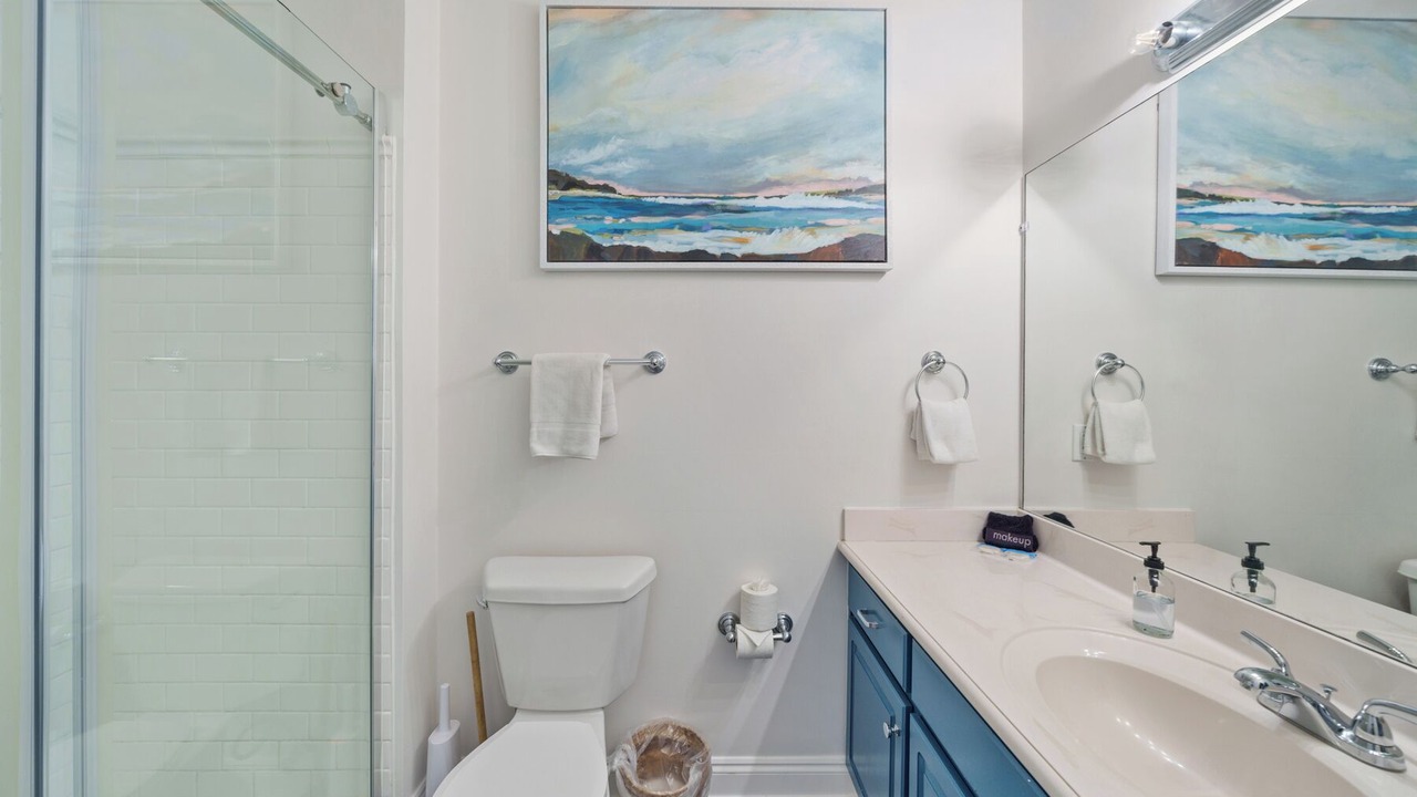 Two full bedrooms with queen Beautyrest pillow top mattresses located downstairs, each with a full bathroom and ample closet space. Master bedroom has television & dvd player.
