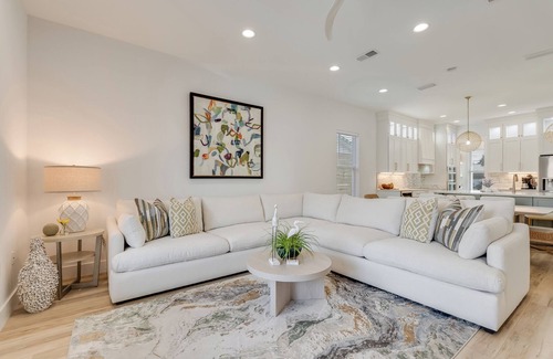 The 3.5 bathrooms are equipped with amenities like walk in shower with separate tub in Master, shower/tub combo in additional bathrooms and hair dryers in all bathrooms. You will find plenty of storage space throughout. Additionally, you'll find WiFi, central heat/AC, an iron, ironing board and full size washer/dryer in this home. The kitchen is fully equipped with plenty of dishes, glassware, cookware, utensils, air fryer, crock pot, toaster, blender, 2 Kureig coffee pots, mixing bowls, mixer, steak utensils, bakeware, oven, convection oven/microwave, 36" cooktop, dishwasher and large farmers sink. You will have additional seating to gather with friends and family around the large island bar along with dining table. There is additional living space on 2nd floor to include wet bar with sink and coffee station, beverage cooler, and ice maker for your favorite beverage to enjoy! You will enjoy additional living space and game room on 3rd floor including Foosball table and dart board. Our home includes an outside shower and beautiful pool seating to enjoy a nice soak along with additional patio seating, barbecue grill, corn hole, ring toss, Jenga and outside patio picnic table along with outside lighting, bistro lights and your choice of pool lighting for entertaining! Don't worry about packing a towel for the pool, we have you covered! Enjoy beautiful sunsets on the wrap around upper front deck or your morning cup of coffee! You will be steps away from beach access, Rick Seltzer park, good eats and beach shops. Stay tuned in to local events, live web cams, etc. by visiting the PCB website: www.visitpanamacitybeach.com. You're sure to make fantastic memories with a stay at our place, "Knot Stressin!"