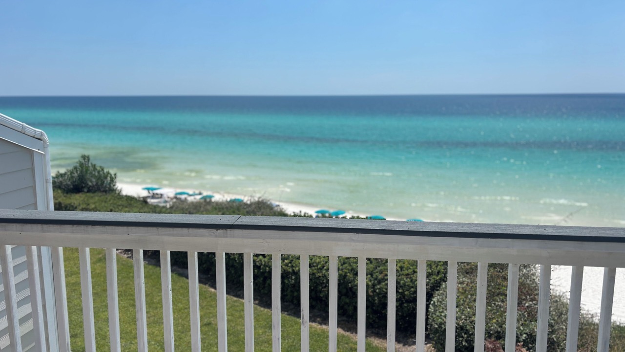 Paradise: You have found it on the Emerald Coast! This 2 bedroom, 2.5 bath and 3 bed Beach House is your gateway to the exquisite emerald waters and sugar-white sands of the Gulf Coast. This is an end unit with Direct Private Beach access, and two amazing outdoor deck/balcony offer promising endless hours of sun, surf, and serenity. Also supplied are 2 beach chairs and umbrella with vendor directly in front of the units. (Booking guest must be 25 and verify ID). The listing shows in PCB while it is located in Inlet Beach officially between Rosemary and Watersound.