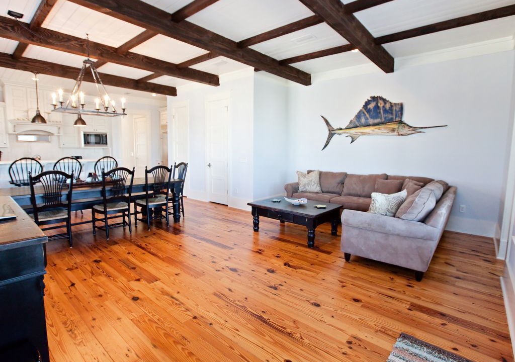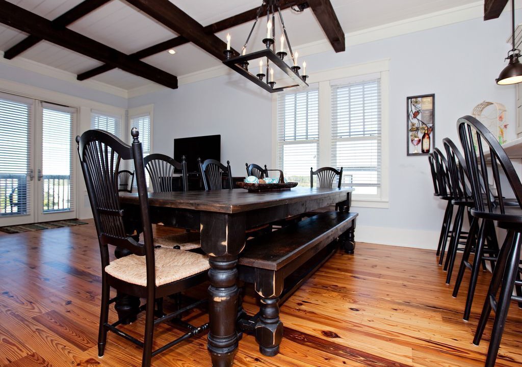 In the morning, at lunch, or after an exhausting day of fun, enjoy the warmth of your family and friends in the comfort of a large upper level living area that includes a gourmet kitchen with Wolf appliances, refrigerator/freezer, dishwasher, wine cooler and microwave. Enjoy meals together on a hand-made large rough-hewn kitchen table that can easily service a very large or two families. The adjacent living area opens to a large balcony that faces the gulf and overlooks the private pool which can be heated ( additional fee applies) September to April, to 95 degrees.